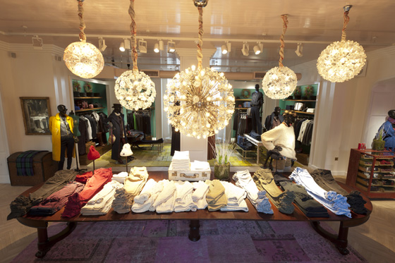 Tommy Hilfiger has opened an extremely prestigious flagship in Knightsbridge. Just a stone’s throw from Harrods, this new clothing emporium epitomises the brand’s essence and is every bit as tantalising and intriguing as you’d expect from this luxury US icon. Tommy’s East Coast heritage is clearly evident with plenty of American hero images throughout and the polished walnut fixtures and oak flooring convey authentic American cool. Essentially Tommy Hilfiger supplies classic, conventional clothing to the well heeled, yet this new store captures the imagination. At its core Tommy has a sense of fun and adventure. rpa:vision has taken this theme and transformed the store into a quirky haven. From a group of magnificent, contemporary chandeliers suspended over a large and beautifully finished period table, to wall mounted stags heads sporting ties, sunglasses and brightly painted antlers, this latest flagship mixes old and new, classic and alternative, over and over, in an upmarket, boutique styled store that appeals to a youthful clientéle.