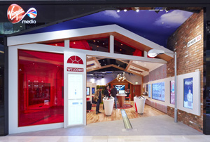 And, now for something really different! Travelling to one of the most successful city centre shopping developments, Westfield London, we find our next retail design concept shining brightly. Fresh, fun, funky, fabulous all great words to describe a great new outlet from a great British brand. It’s bold, bright and stands head and shoulders above the rest of its competitors. A visual synthesis of digital technology and traditional bricks and mortar, Virgin delivers a store with presence and a unique approach to media retailing!