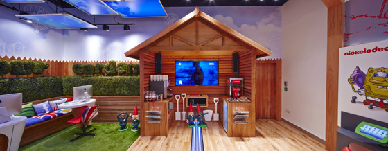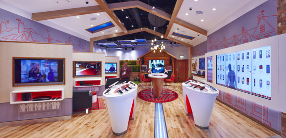 Inside, the theme continues and is all about ambience – not forgetting the very latest cutting edge technology. Very little product is on display. It’s all about the brand experience. This new experience from Virgin Media builds upon an already strong brand and breaks with convention. On the left side the focus is on entertainment. Booths arranged in the style of a lounge with TV screens, sofas, coffee tables, even rugs and inset shelving allow you to discover Virgin’s media options. Whilst on the right side almost the entire wall is interactive and dedicated to mobile phones. You are able to view different mobiles, networks and price plans, compare and make your selection by touch and kinetic gestures. As you would expect, Virgin’s flagship red features heavily instore and is splashed about on many of the surfaces. Limed oak flooring has been chosen to add warmth and help convey the relaxed, homely feeling. The real magic is at the rear, where a full size garden shed is erected and kitted out with another large digital screen, seating and various garden implements. Tea, coffee and refreshments are readily available whilst you sit back and relax. To the left is a sensory garden with its very own green grass and digital blue sky composed of six large LCD screens suspended from the ceiling; clouds float, birds fly and planes jet past, accompanied by sounds. Close your eyes and you might forget where you are entirely. This area is perfect if you want some privacy to discuss the details of your acquisition. There is no fixed service area or counter, staff complete transactions on tablets anywhere around the store. iPads are available for customers’ use and can be found displayed on two central display tables. Finally, one further unforgettable feature that enhances the ‘our house’ design is the ceiling. A roof has been recreated over the entire store complete with large oak beams criss-crossing the pitch and skylights in the recesses. This store is quite remarkable and the concept will be rolled out to other Virgin Media stores across the UK soon. If you’re looking to buy a new phone, or connect up to the ether, this store will definitely take the stress out of the detail. Images courtesy of Bernhard Kristinn Photography Iceland.