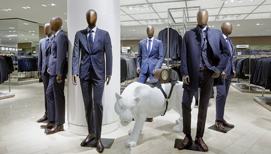 Shopfittings, shelving and other display equipment follow suit. Beauty and accessories is opulent with predominantly black and gold perimeter units together with marble topped, mirrored display tables. In mens formalwear wall and freestanding units are mostly dark wood and black with angular, metal hanging rails, whereas mens casual and fashionwear is more crude and raw (yet still well finished). The womenswear departments are similarly designed with a softer, lighter feel - white display tables and shelving with gently curved hanging rails breathe a sophisticated and refined air to this vast department.