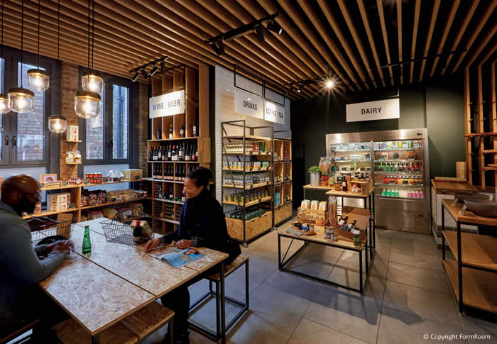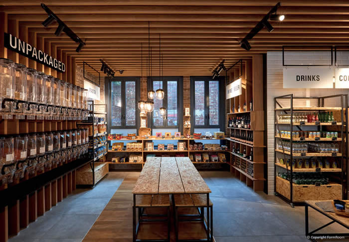 This new venture delivers a store that is both modern and traditional at the same time – practical yet pleasing. Essentially using a modular system which can be quickly and easily changed to suit and fit their diverse merchandise. It has a very distinct personality often lacking in the convenience sector. Designer, FormRoom has created an interior rather than a mere shop for Naturally’s first launch. Two further stores are planned for London before going nationwide. If you are lucky enough to have one nearby, it is definitely a great place to grab your groceries. .