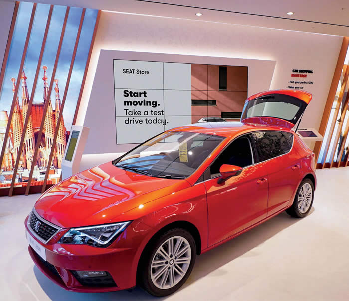 SEAT, London For our final London based store review we cross the capital once more to visit the largest shopping centre in Europe, Westfield London in White City. It’s hard to believe that this retail phenomenon has been trading for ten years. With its new 740,000 square foot second-phase expansion it looks and feels every bit as sensational as it did at its inception. Our next creative contender is housed within this new wing. Whilst it is not the first of its kind, this recently launched flagship is nonetheless an excellent example of innovation using cutting edge technology and a relaxed sales approach in order to win new business. SEAT launches on the ground floor of this shopping mecca with a cunning new concept. It’s no surprise this approach to car retailing has really taken off; the stores look amazing and epitomise the car of the future, even if the model in this store isn’t an electric supercar. Plus, undoubtedly they also benefit from the increased footfall that contemporary retail and leisure destinations attract.