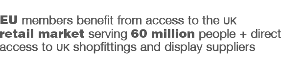 EU members will benefit from access to the UK retail market serving 60 million people, plus direct access to UK shopfittings and display suppliers within the SDEA membership.