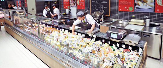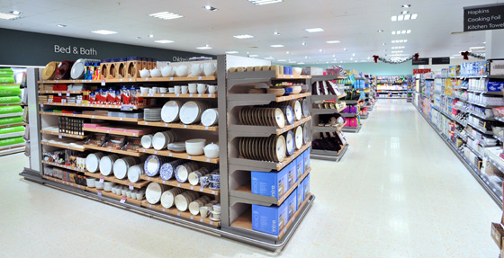 Refrigeration units using propane based, HFC (Hydro Fluoro Carbon) free refrigeration technology were designed to further reduce CO2, whilst cold air spillage from open-front fridges is captured and used to cool other areas and heat produced from the cooling cycle is used to heat the aisles.